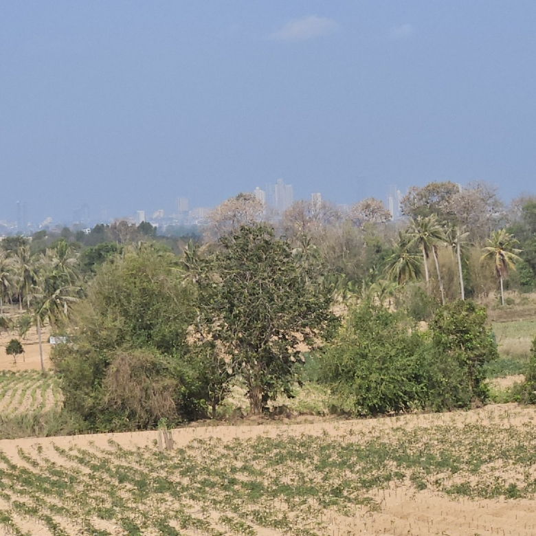 Superior plots of land available just east of Pattaya City on rising hillside affording views to Pattaya and the Ocean close to International Schools. 6 adjoining road fronting land plots for sale. In total 12-0-18 (12rai 18TW / 3212m2) all available together or individually. Set on a government asphalt road is 650m to the slip road for Route 36. There is high tension electric available in the road. The rising hillside affords good views. Sale of all or part is possible and additional land is available. Quick access to Route 36 & thereby Route 7.