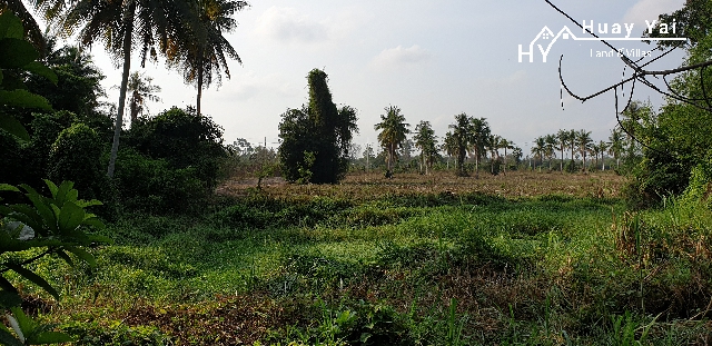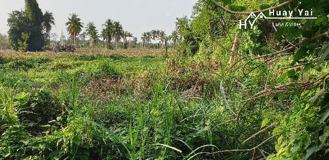 Its long , its thin. Its walled 2 sides. It has some big trees and a government klong running through it. It is close to the village centre just off the Huay Yai Road. It could be absolutely stunning!