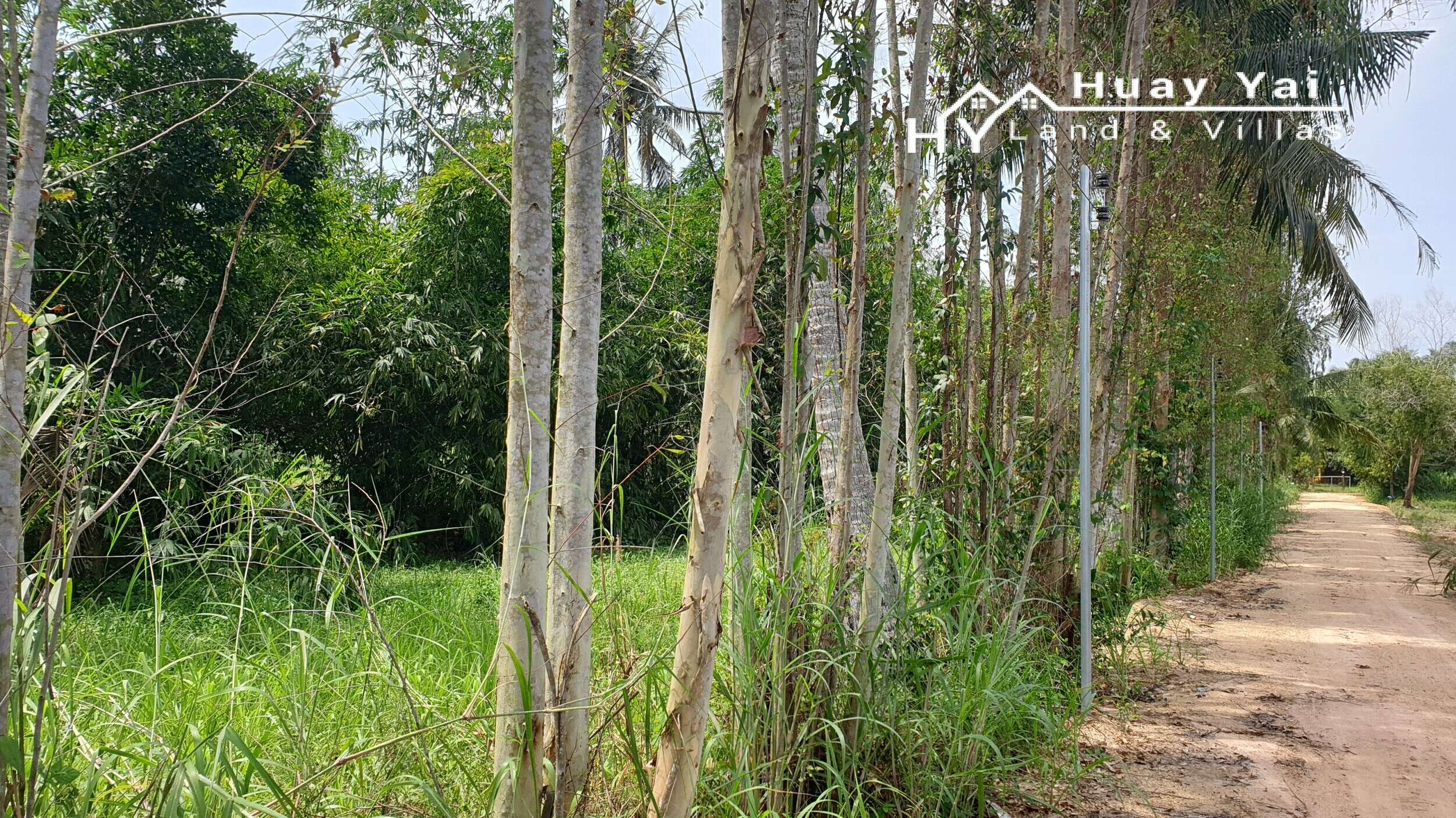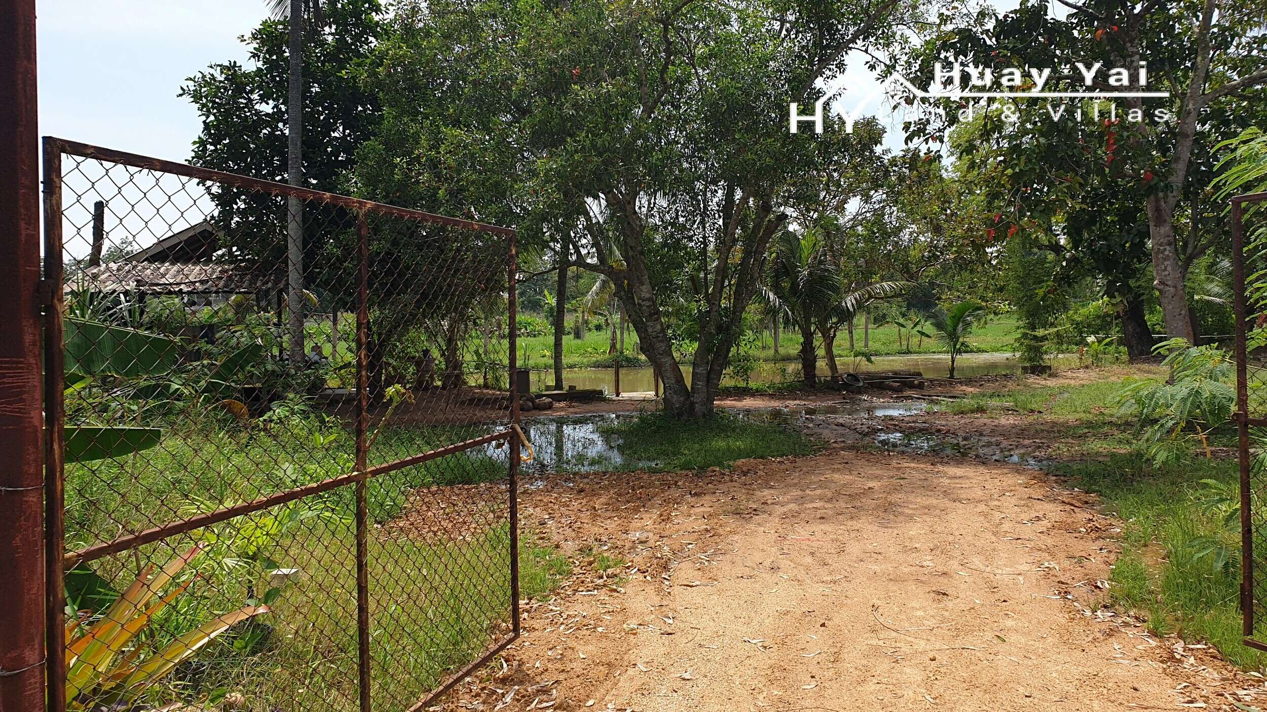 Set on government dirt road off the Huay Yai main road 1km. High Tension electric 900m. This area is fast improving and developing with the building of upmarket villas on 24 rai almost adjacent to this land. There is some electric in the soi. Set on a quiet small dirt soi. In total, the land is quite pretty with a variety of trees and shrubs and a small pond