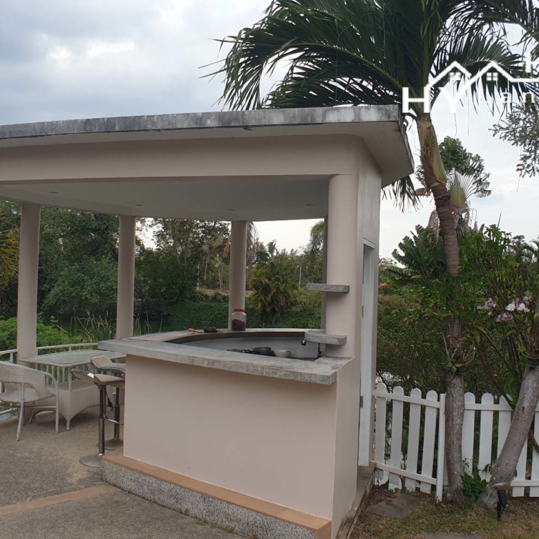 This spacious pool villa is set in a very quiet position on a small aspalt government soi close to open farmland (perfect for dog walking).