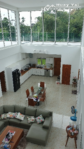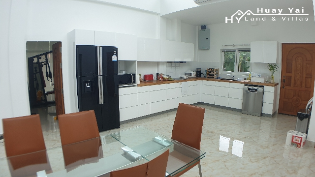 This modern designed Country House has an abundance of features and charm. Set in a good sized plot of 309tw (1234 square metres) it is set on a tarmac government soi backing onto a government klong in a quiet residential area in the sort after Huay Yai Jean. The unique design borrows from David Lloyd Wright, the famous modernist architect. Approached through an attractive stone wall to the front door and Double Car Port. The house and its grounds are benefited from the adjoining building plot being included in the sale.