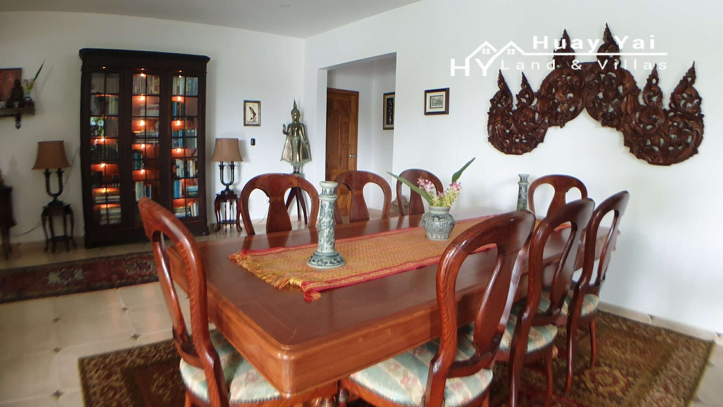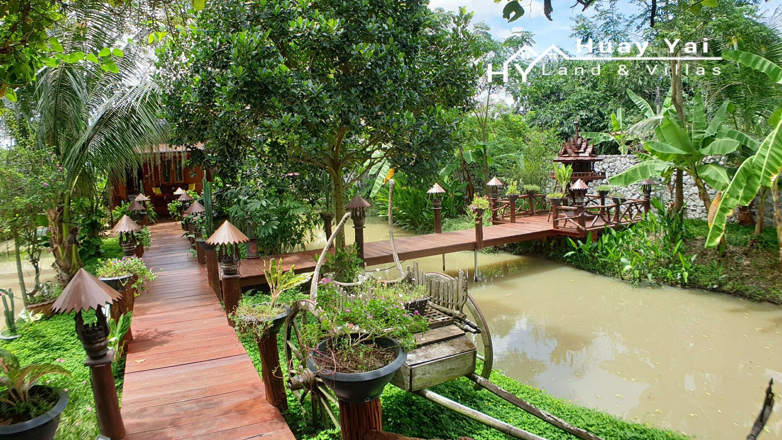 Beautifully presented with an abundance of character and charm in both the house and throughout the garden too. Feature teak wood and artwork throughout. This details is carried throughout including the landscaped gardens with genuine inside outside living with large covered Dining and Sitting Terrace. Approached by a government dirt soi just off Soi Polo