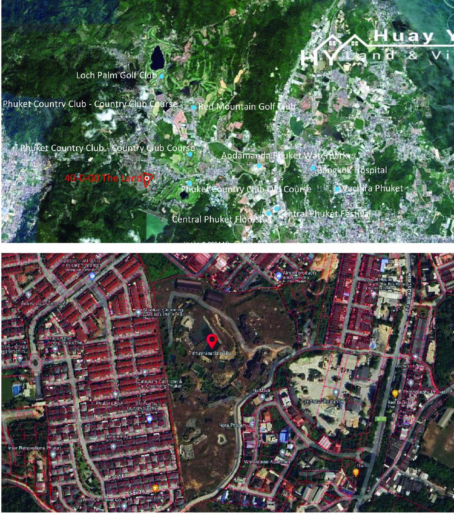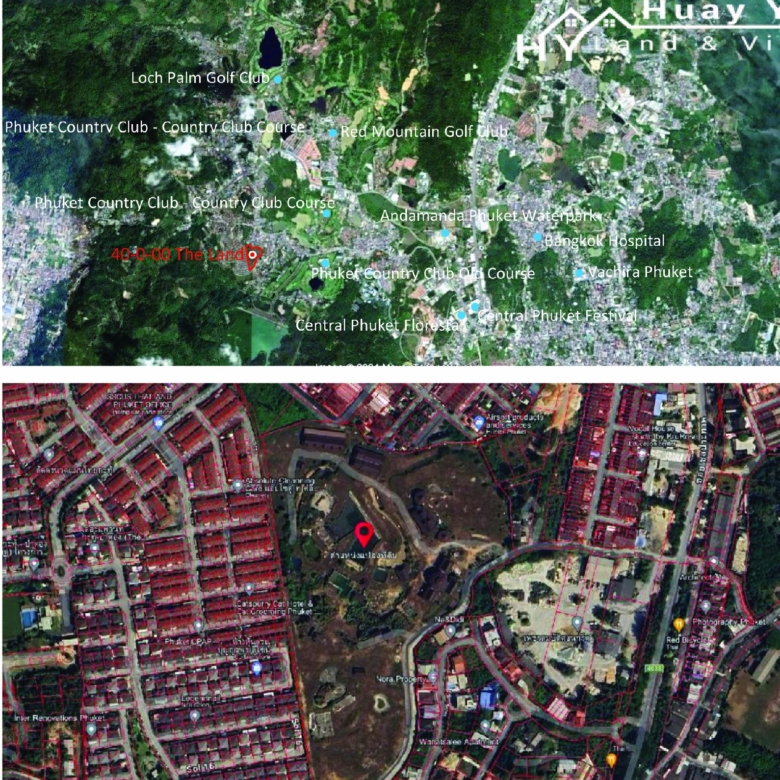 Approached by asphalt government soi off a large wide side road set in total 550m from the main 4020road (Vichitsongkram Road) and less than 10 minutes to Central, 2 Golf Courses, Driving Range, Water Park and International School. From throughout the site there are views of attractive tree clad hills on all sides