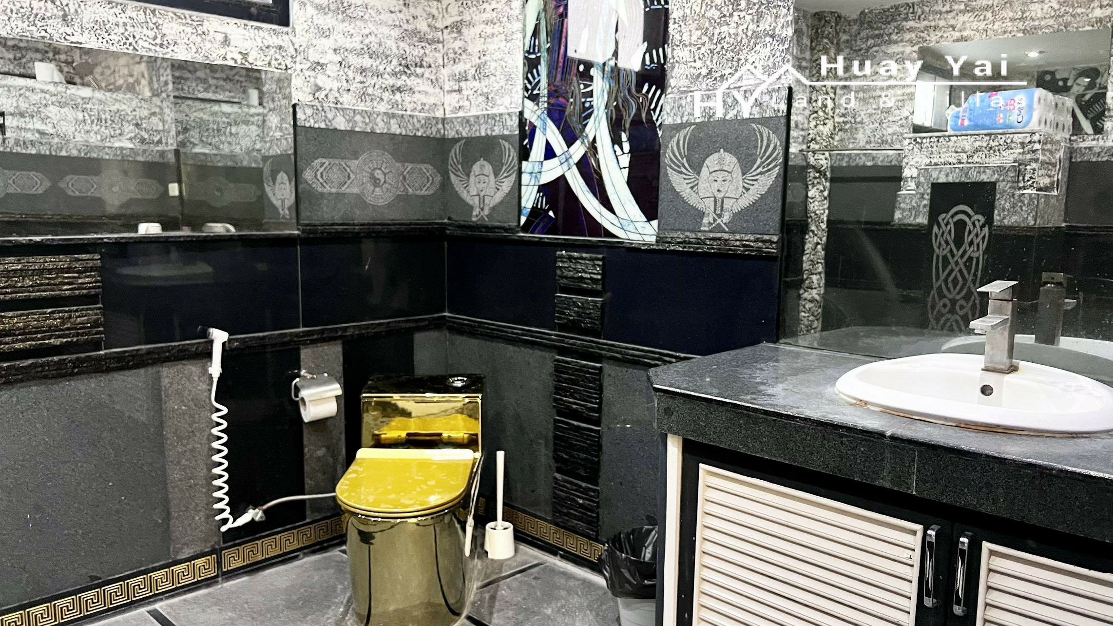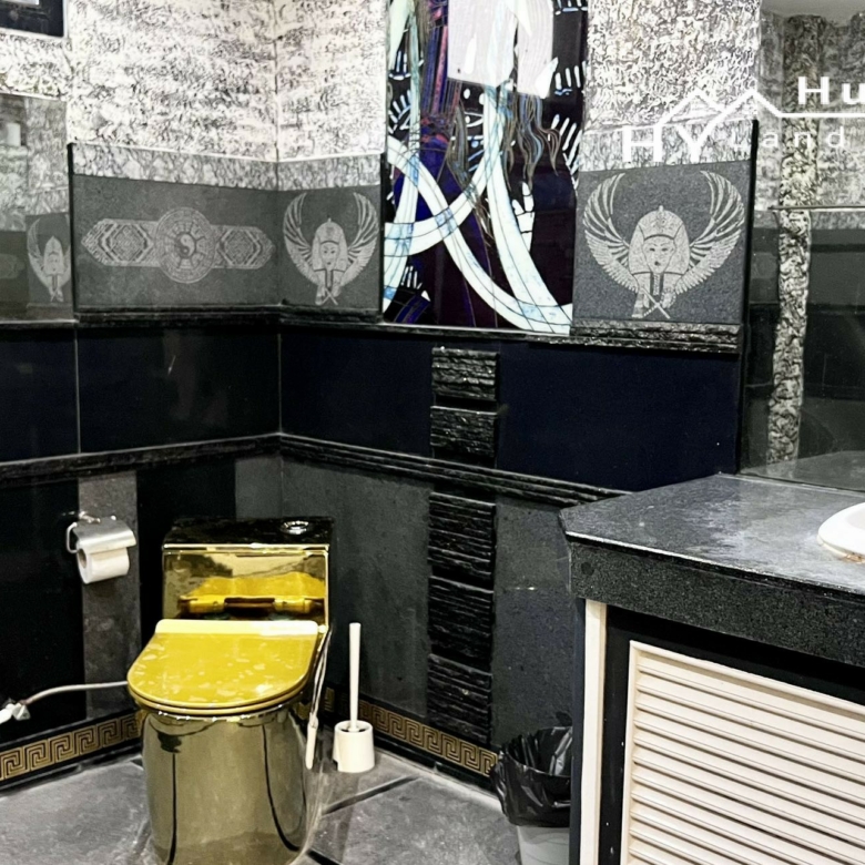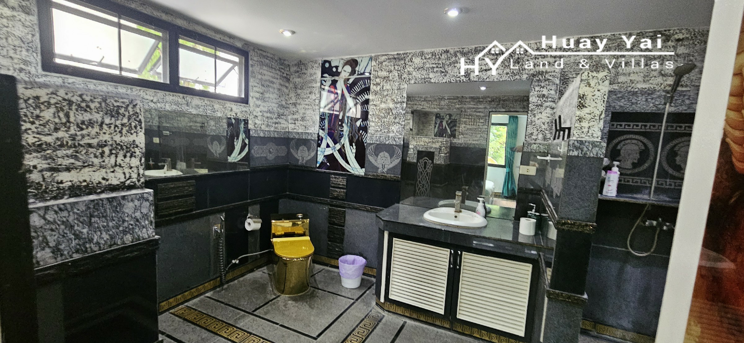 The House of Bling, full of Versace tiling. It benefits from having been greatly improved and extended and offers HUGE accommodation, ideal for rental. Set within Phoenix Golf Course, it has superb long distance view from the 2x third floor roof terraces (one covered).