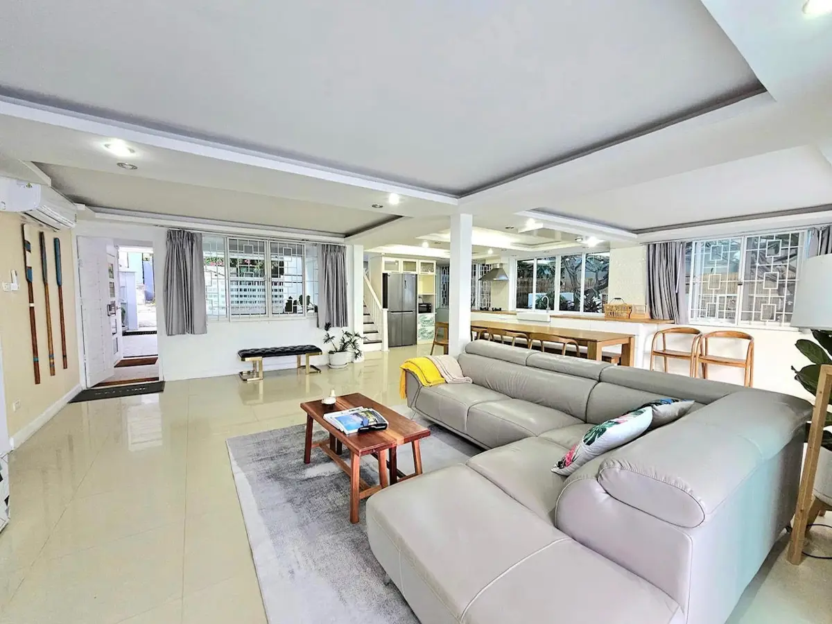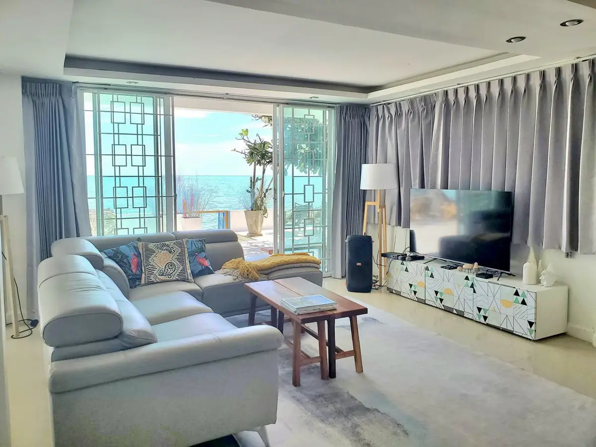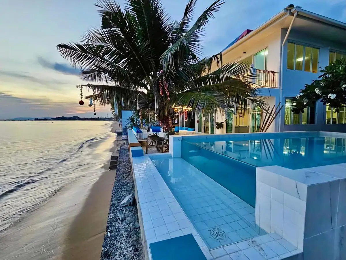 This is your opportunty to own one of the most beautiful and popular boutique beach resorts on Phala Beach in Rayong province! Now with beachfront glamping facility inluded. The property is presently being offered as a successful rental property with OTAs and already earning a healthy income for its owner. The property is being sold as a turn-key business, and should you require cleaning and maintanence staff we are glad to make introductions. Or you can also have it as your own private beach residence, or you can live in one structure and continue to offer the second house and glamping site as income earning properties as there is a slidng separation gate between the large and smaller house. The choice is yours. The resort is also being offered with a management agreement if desired, which makes it a turnkey profit making investment the day you take possession!